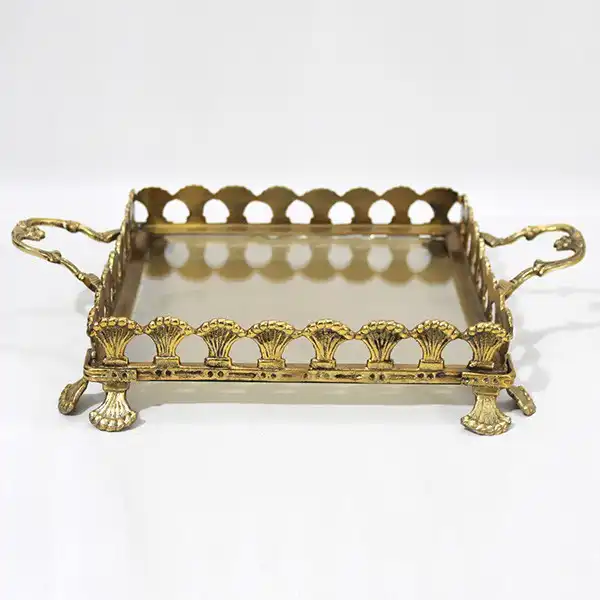 ΔΙΣΚΟΣ ΓΥΑΛΙΝΟΣ ΜΕ ΜΕΤΑΛΛΙΚΑ ΤΕΛΕΙΩΜΑΤΑ ΑΝΤΙΚΕ ΧΡΥΣΟ-ΜΕΛΙ ΓΥΑΛΙ 36x27x7cm
