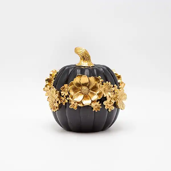 ΔΙΑΚΟΣΜΗΤΙΚΗ ΚΟΛΟΚΥΘΑ ΜΕ ΛΟΥΛΟΥΔΙΑ ΠΟΛΥΡΕΖΙΝ ΜΑΥΡΟ-ΧΡΥΣΟ 14.8×14.4×14.2cm