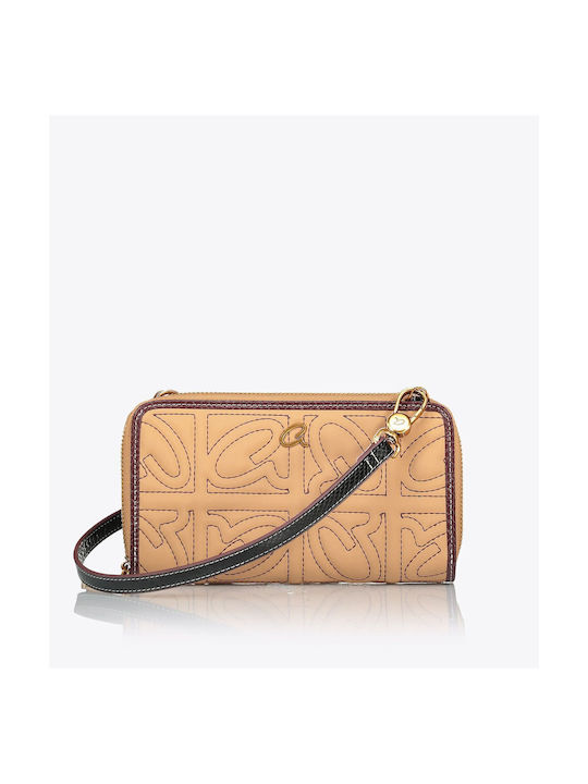 Axel Γυναικείο πορτοφόλι καπιτονέ με λουράκι Arya Μπεζ 1101-1580