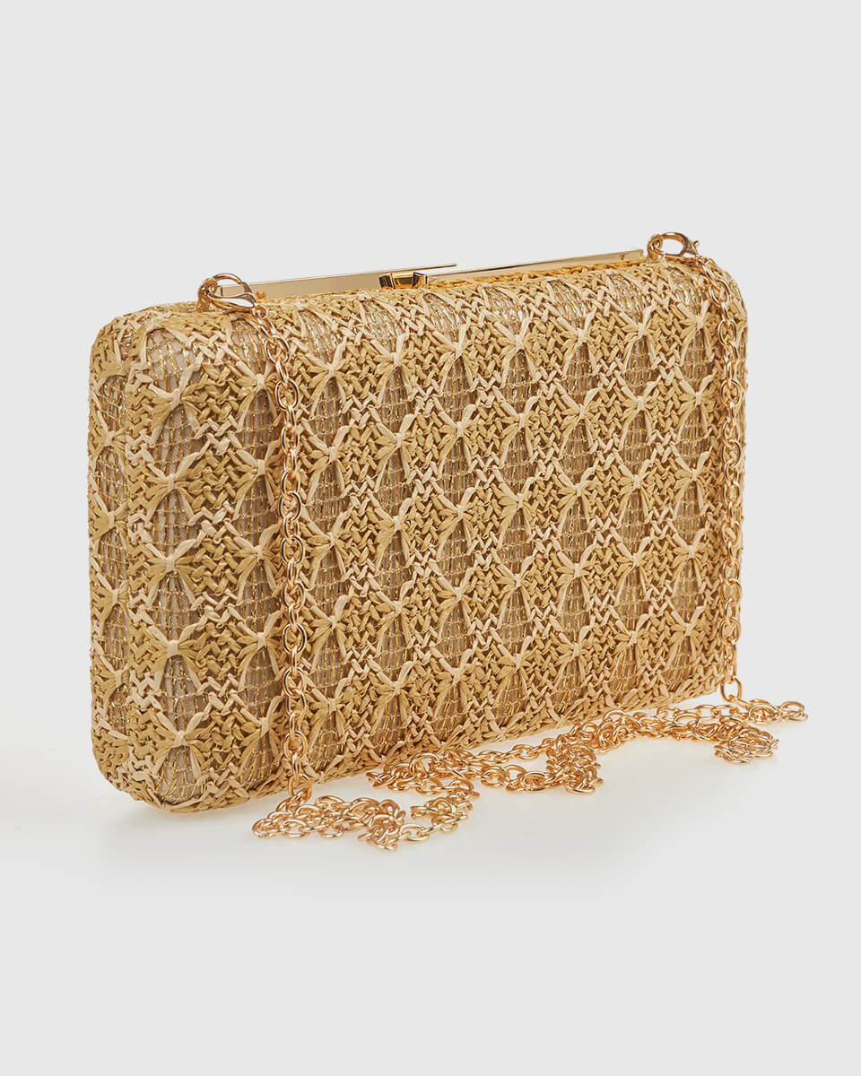 Κλέψτε τις εντυπώσεις στην επόμενη εκδήλωσή σας με αυτό το υπέροχο γυναικείο αμπιγέ τσαντάκι Verde. Διαθέτει περίτεχνο υφαντό σχέδιο με λεπτεπίλεπτο μοτίβο διαμαντιών, συνδυάζοντας αστραφτερούς μεταλλικούς τόνους με κομψότητα και φινέτσα. Η αποσπώμενη αλυσίδα προσφέρει ευελιξία, επιτρέποντάς σας να το κρατήσετε ως clutch ή να το φορέσετε στον ώμο για μια σικ βραδινή εμφάνιση.