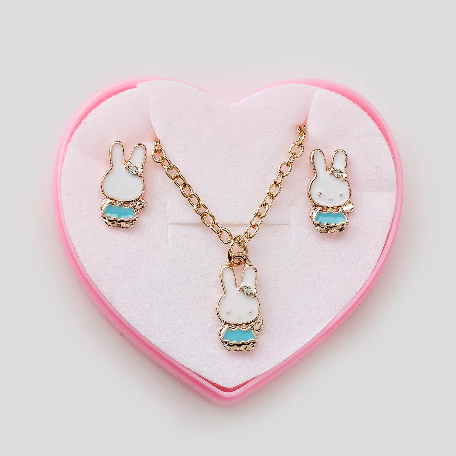 Sequoia Παιδικό Υποαλλεργικό Χάλκινο Set Σκουλαρίκι-Κολιέ Λαγουδάκι Γαλάζιο